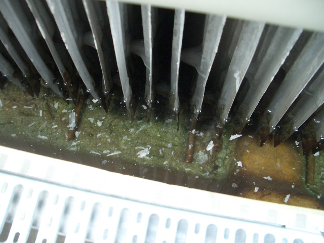 ノンブロー運転の開放型冷却塔”50RT (水量1T)”タイプにタワープロ8031を添加し、3週間経過した例です。